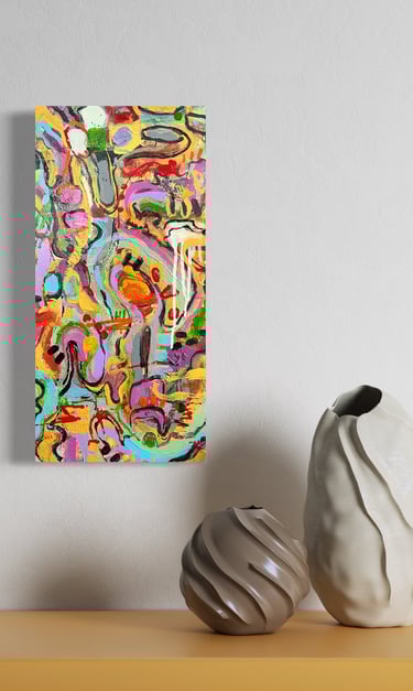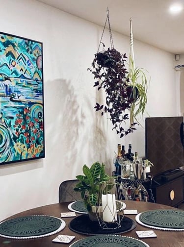 When I create a custom commission, I work specifically to your space, colour palette, and style. Each artwork is tailored to reflect your unique atmosphere — something that feels truly “you.” I can incorporate personal details such as words, dates, or hidden symbols that hold meaning, allowing your artwork to become both a visual statement and a private keepsake.