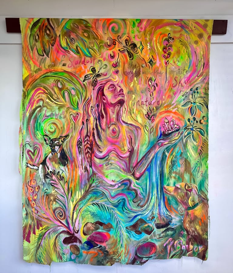 I collaborate closely with each client, checking in along the way with photos and videos to ensure we’re both aligned and loving the direction of the piece. Every commission is a shared journey — a balance between my creative intuition and your personal vision.